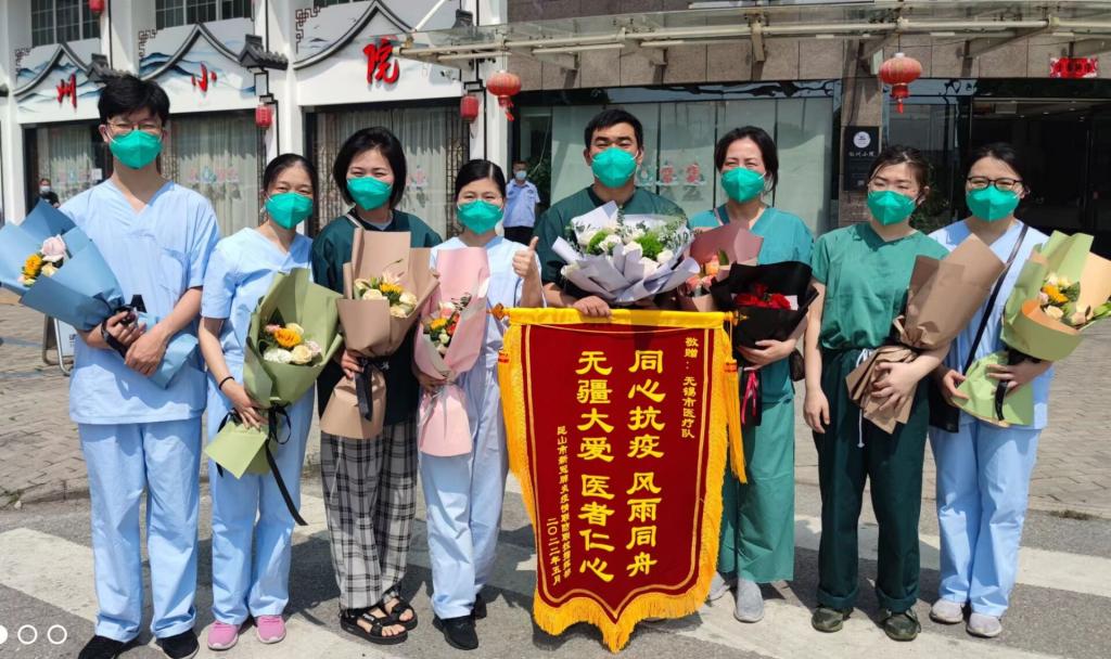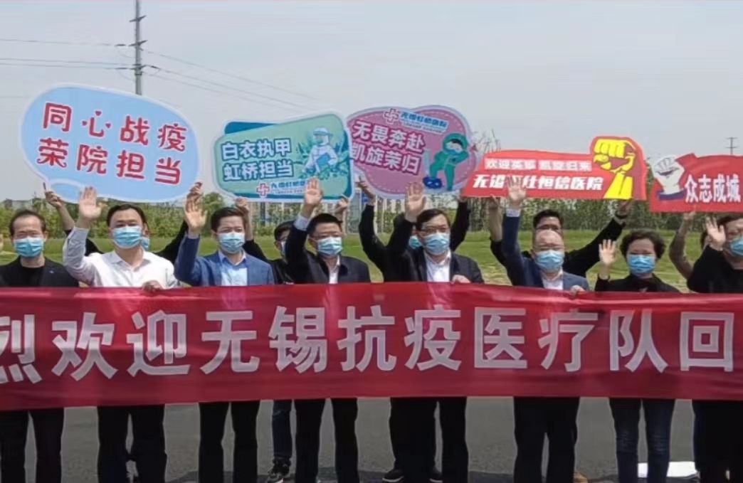 5月2日上午,江南大学无锡医学院援苏核酸检测教师志愿者奋战16天,四战张家港,九战昆山,累计采样70000余例,圆满完成援苏核酸检测任务。无锡市副市长秦咏薪,无锡市卫健委党委书记兼主任笪学荣、党委副书记过栋、副主任王新华,江南大学医学院院长马鑫等领导在南泉站口迎接志愿者队伍凯旋。