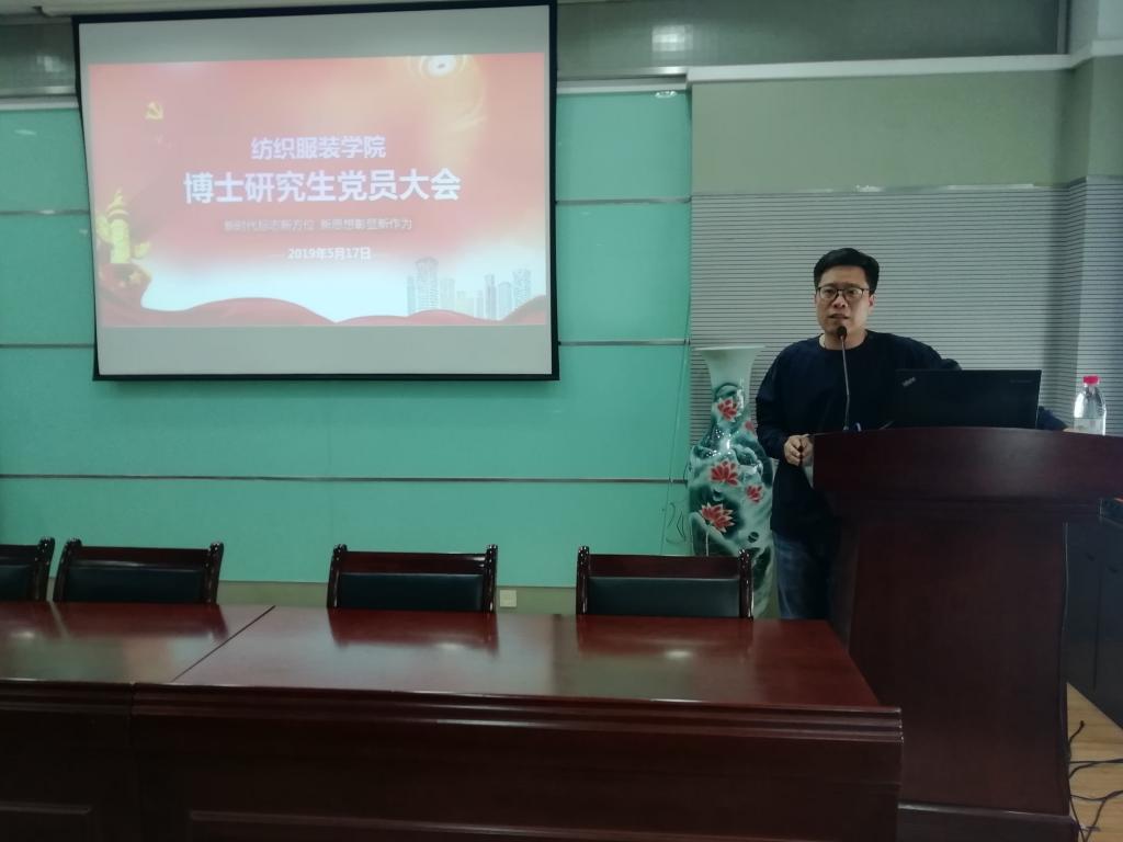 5月17日下午,纺服学院博士研究生党员大会暨学习习近平总书记在纪念五四运动100周年大会上的重要讲话精神专题党课在学院楼A103会议室举行。院党委副书记周云龙出席大会并讲授党课。