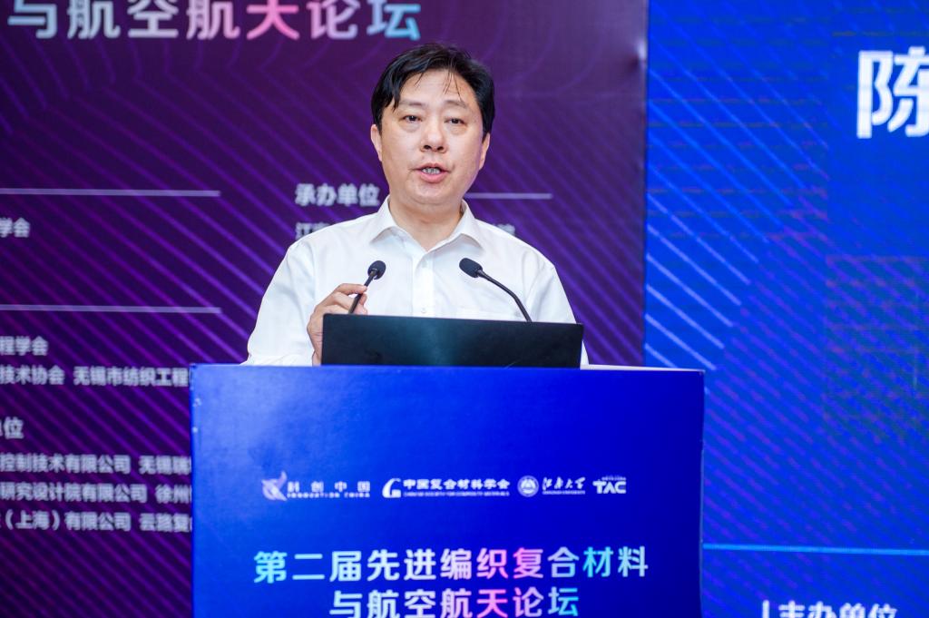 顾正彪代表江南大学致辞,他介绍了学校及纺织学科的发展情况,并对本次会议主办单位及协办单位表示了衷心的感谢。他表示,本次论坛的举办将深入研讨先进编织复合材料产业学科与发展动态前沿趋势,充分展示先进编织复合材料技术应用,有助于推动长三角航空航天用先进编织复合材料产业发展。