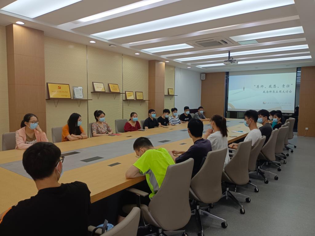 讨论会上,同学们发言热烈,表达了对老师们孜孜不倦教书育人的感谢之情,也讲述了一些与老师之间有趣有爱的温馨小故事。一位同学说,来到江大之后第一个遇到的是班主任老师,班主任老师幽默、有责任心,平时很关心班上同学的学习与生活,会给同学们制定学习目标,给予大家很多的期望与鼓励。一位大四同学表示,老师就是我们前进路上的照明灯,我们要懂得感恩老师、尊重老师,我们的学习和成长都离不开老师的培养,祝所有老师教师节快乐。除了辛勤付出的专业课老师,好几位同学都提到了亦师亦友的辅导员老师。今年暑假期间,学院辅导员老师们无微不至地关注着留校同学们的生活情况,不仅关心同学们的学习,还尽心尽力关切同学们的心理健康。研究生同学代表提到,研究生导师不仅仅是老师,更像是朋友,在科研上给予指导,在生活上给予关心陪伴。