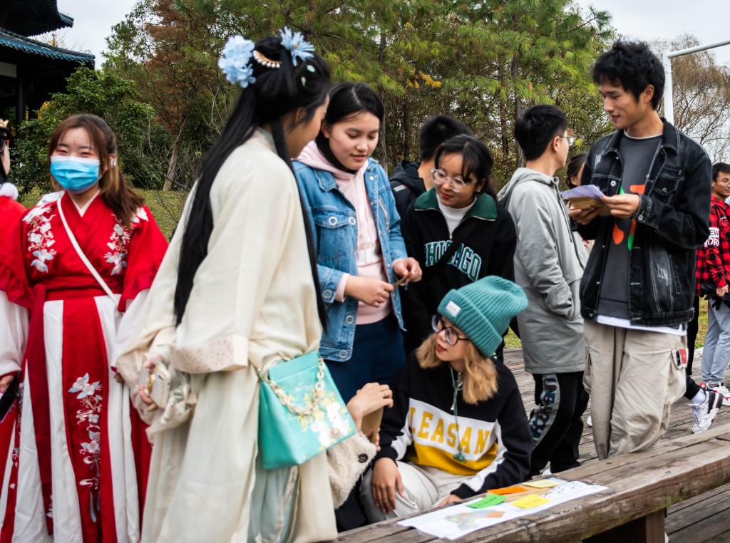 汉文化知识竞赛共分为初赛、复赛和决赛三个阶段。初赛以纸质试卷作答的形式开展,由参赛者自由组队,共同完成一份汉文化知识答卷。复赛在知识问答的基础上融入了投壶、华容道等传统文化元素,让大家在游戏中感受传统文化的魅力。决赛以舞台表演的形式直观展现参赛选手的知识水平和人文素养,让同学在沉浸式教育中提升文化素养。经过激烈角逐,最终“阳光男孩队”“七彩梦之队”和“青山见我应如是队”分别斩获汉文化知识竞赛前三名。