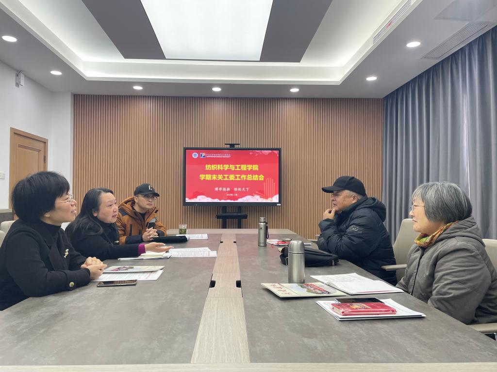 1月7日上午,纺织科学与工程学院在学院A304会议室召开学期末关工委工作总结会,学院党委书记张菁,党委副书记、副院长陈艳君,学院关工委常务副主任、特邀党建组织员袁伯兴,关工委委员、特邀党建组织员秦建亚参加会议,会议由学院分团委书记陈裕主持。