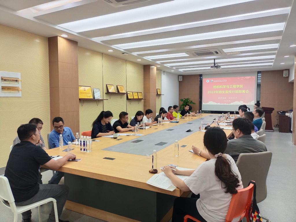 为统筹落实好2022年本科招生宣传工作,6月20日下午,纺织科学与工程学院在学院A306会议室召开2022年本科招生宣传行前部署会。学院全体在锡院领导、招生就业处招生办公室主任郑真真以及学校四川、江苏南通招生宣传组全体成员参加会议,会议由学院党委副书记陈艳君主持。