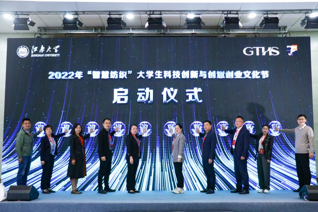 典礼上,顾华锋代表本次赛事的支持单位进行企业宣讲。他表示,江苏国泰华盛实业有限公司以人为本、坚持走高质量可持续发展之路,应用新材料,开发新产品,引进新技术,采用新工艺,不断创新市场需求。他代表公司,真诚希望更多优秀江南纺织学子能够投身于纱线行业中,设计出更多迎合市场需求的高质量产品。随后,校企双方嘉宾共同启动2022年“智慧纺织”大学生科技创新与创意创业文化节。今年文化节期间,纺织科学与工程学院将举办“国泰华盛杯”首届江南大学纱线设计大赛、“国泰华盛杯”首届江南大学绿色染整科技创新竞赛、“吉润杯”首届江南大学纺织服装类大学生创新创业大赛三项校级层面专业类学科竞赛,同时开展“青春芳华”创意扎染设计大赛2.0、迎新文化节等群众性科创活动。科创文化节旨在通过“专业搭台、学科融合、大众参与”的模式,营造“科创育人”浓厚氛围,助力创新型纺织科技人才培养。