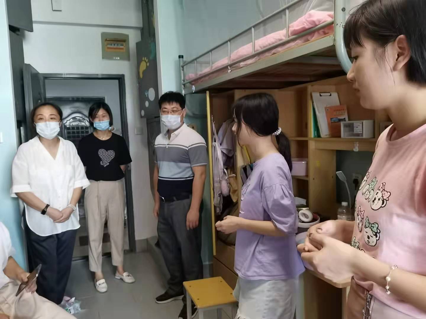 为及时了解新生进校后的整体情况,让学生感受到家的关怀与温暖,10月9日上午,在学院党委书记高雪梅的带领下,学院党委副书记、副院长方俊,分团委书记孟召双、研究生辅导员孟飞、2021级本科生辅导员余骏皓共同前往榴园、桃园与兰园学生宿舍,走访看望到校新生。
