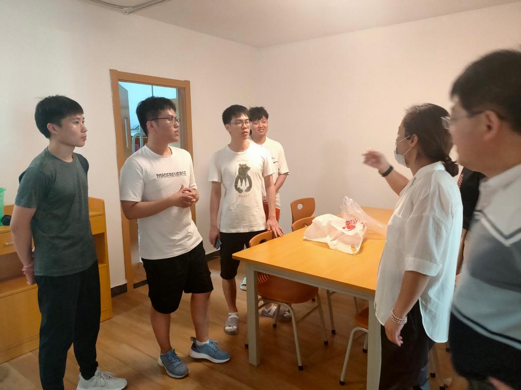 随后,高雪梅一行人来到了研究生兰园的宿舍。她详细了解了同学们的家乡、导师、生活适应等情况,鼓励同学们做好充分的准备,以最饱满的精神状态开始自己的科研生活。她讲到,科研生活会遇到很多困难,大家住在一起要相互帮助、相互支持,顺利度过研究生三年时光。同学们表达宿舍环境很好,很开心能到江南大学继续自己的学业生涯。