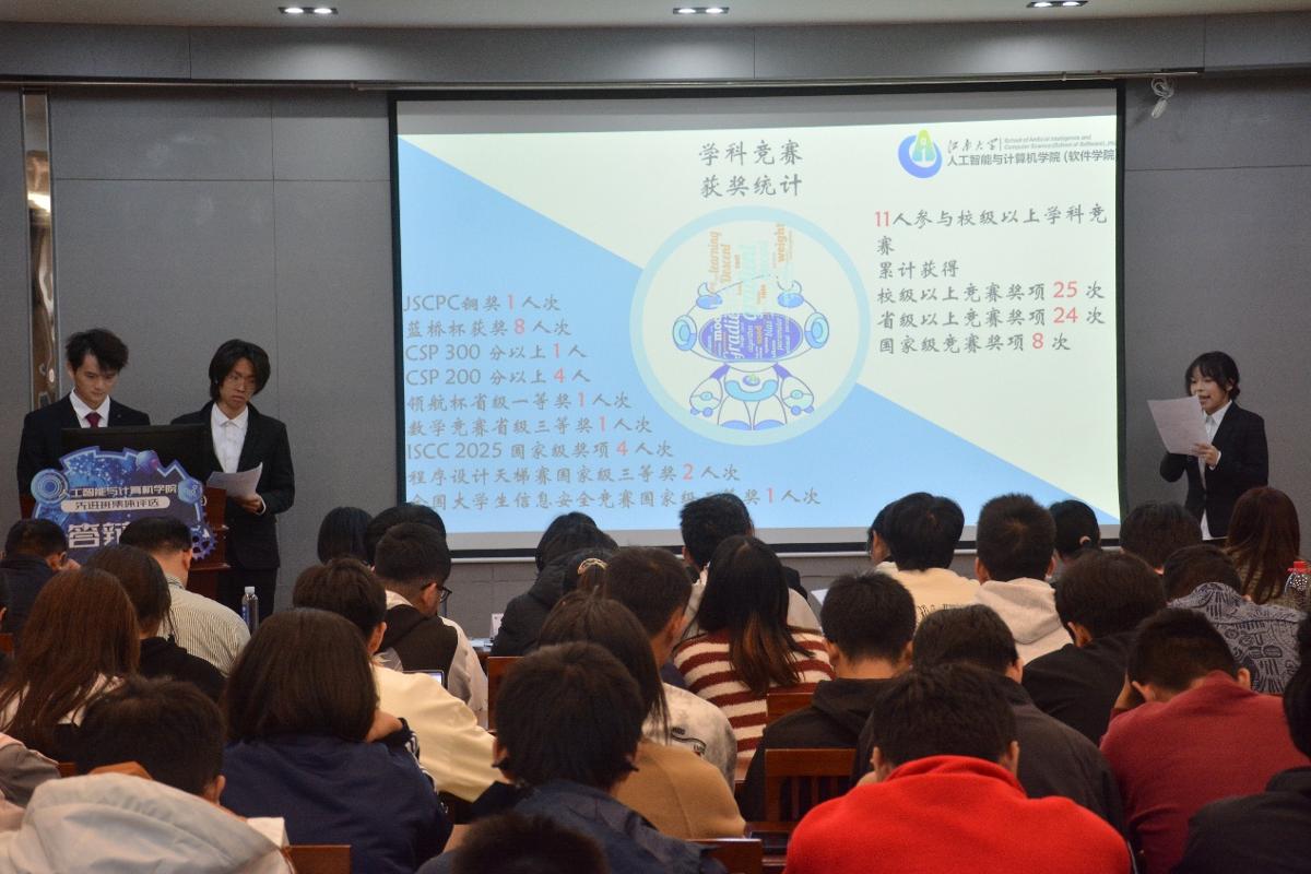 经评选,数字媒体技术2202,计算机科学与技术(申威)2401,人工智能2204,计算机科学与技术(申威)2402,人工智能2301,人工智能2304,计算机科学与技术2404获评学院2024-2025学年先进班集体。评委共同为获奖班级颁发荣誉证书,并合影留念。
