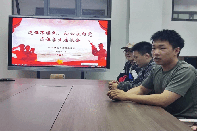 为进一步加强学院国防教育工作,鼓励退役大学生士兵继续发扬军人的优良作风,11月9日下午,人工智能与计算机学院在信息楼B118会议室召开“退伍不褪色,初心永向党”退伍学生座谈会。院党委副书记兼副院长陈祎、辅导员戴士焱、杨玉莹以及17名退伍学生参加会议,会议由辅导员杨玉莹主持。