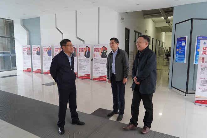 陈卫参观了大学生创新实践基地、实验室、办公室等,刘渊介绍了学院搬迁及安置情况。他专门来到王士同教授和王映辉教授办公室,亲切看望了两位二级教授,并与研究生们进行交流,鼓励他们好好学习。