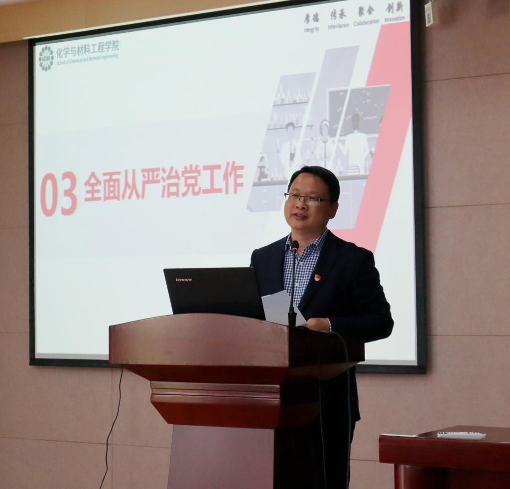 4月21日下午,化工学院在化工楼B329会议室召开全体教职工大会,主要内容为2021年深化全面从严治党暨强化师德师风建设工作。学院全体教职工参加会议,会议由学院党委书记潘庆伟主持。