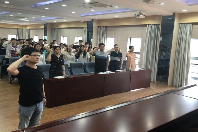 大会伊始,首先由2021届博士生党员刘朋飞带领全体师生党员庄严宣誓,重温入党誓词、坚定入党初心。