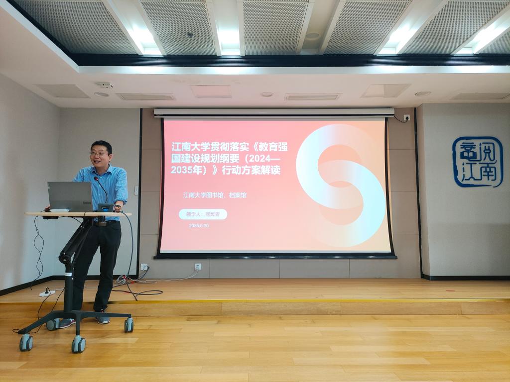 图书馆、档案馆副馆长顾烨青解读《江南大学贯彻落实〈教育强国建设规划纲要(2024—2035年)〉行动方案》,对《行动方案》的指导思想、目标任务、基本原则和八个专项行动任务进行了深入讲解。结合图书馆、档案馆具体实际,对两馆贯彻《行动方案》提出初步展望,指出两馆要以《行动方案》为指引,结合两馆“十四五”发展成效与“十五五”高校图书馆、档案馆行业发展趋势,从打造文化育人阵地、创新智慧育人模式、强化情报信息服务能力、培育专业馆员队伍、嵌入科技创新服务链条、优化空间资源布局、拓展全球合作网络、实施党员“三领行动”等八个方面,推动《行动方案》落实落细。