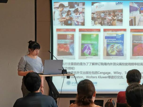 王帅倩、周灵稀、张娣、秦彦翠四位老师分别围绕“国内高校图书馆学术资源电子数据库建设与国外学术资源库的发展情况”“国内高校外文教科书采购及AI赋能资源建设的进展”“省内高校图书馆学科创新服务的新理念与新举措”“国内阅读推广的新形势、新任务与新进展”等,分享了她们在学习、培训期间的所学、所思、所悟,并结合本部门工作实际,谈了未来工作的重点与思路。