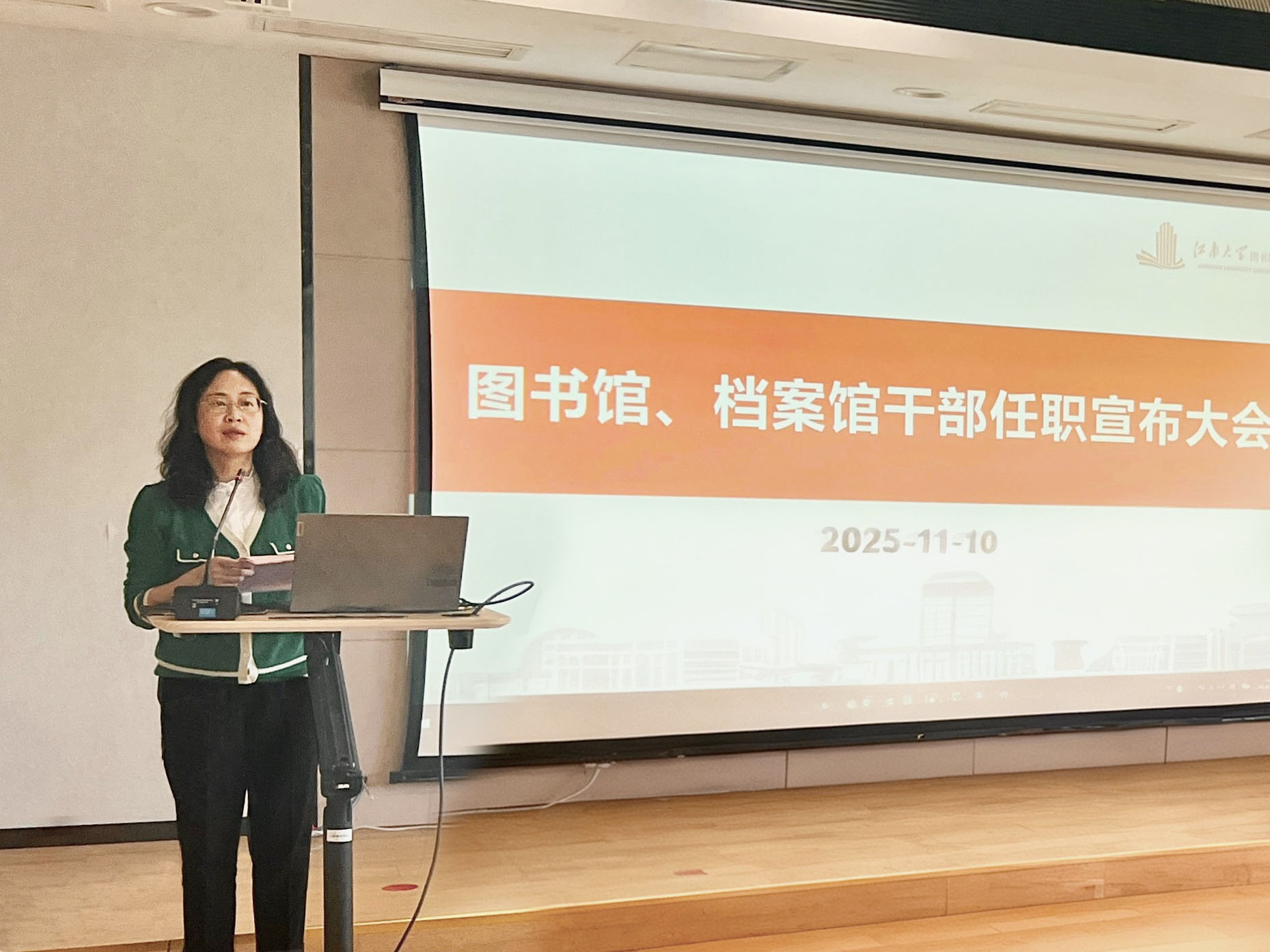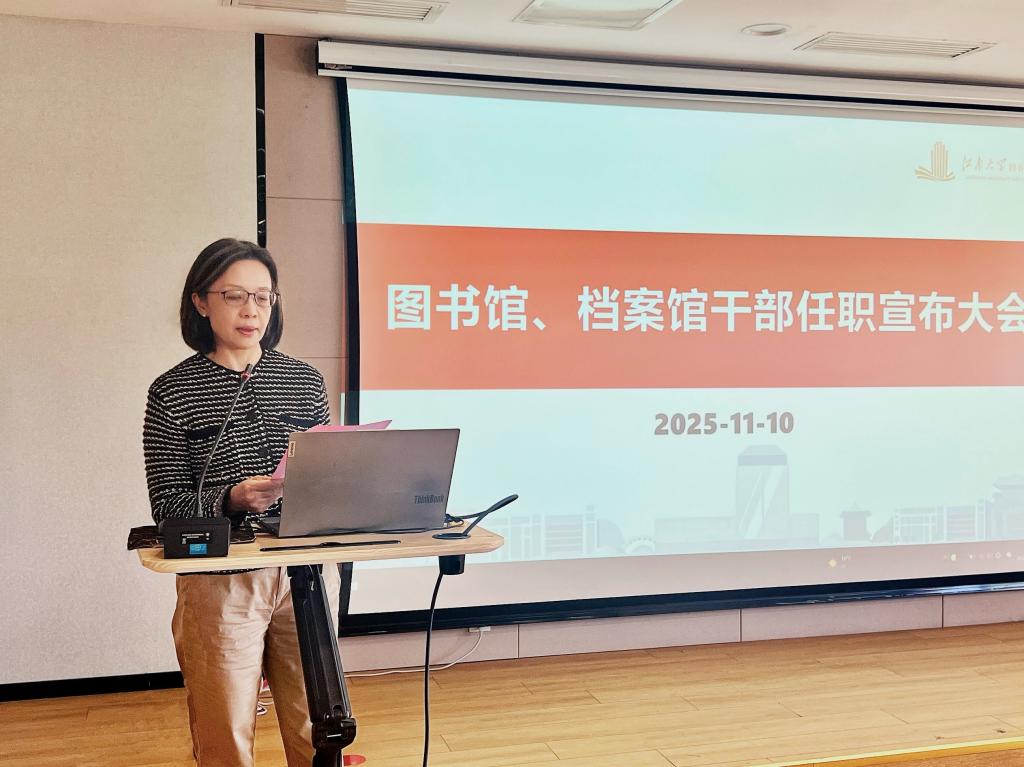 11月10日下午,图书馆、档案馆在鼋阅空间召开干部任职大会。校党委常委、副校长张影陆,党校常务副校长兼党委组织部副部长周雪晖出席会议,两馆领导班子与全体馆员参加会议。会议由图书馆、档案馆馆长陈敬华主持。
