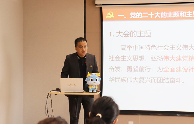 会上,唐忠宝“以中国式现代化全面推进中华民族伟大复兴”为主题,围绕党的二十大主题和主要成果、过去5年的工作和新时代10年的伟大变革、开辟马克思主义中国化时代化新境界、中国式现代化、全面建设社会主义现代化国家的目标任务、坚持党的全面领导和全面从严治党等六个方面进行解读,以具体的案例和数据重点阐述了习近平新时代中国特色社会主义思想的世界观和方法论、中国式现代化的中国特色和本质要求、深入推进新时代党的建设新的伟大工程。最后,他围绕当前“如何应对风险挑战”,指出我们必须要深刻把握五个“必由之路”的深刻内涵,引领和保障中国特色社会主义巍巍巨轮乘风破浪、行稳致远。