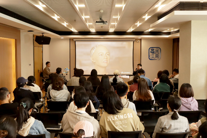 李栋宁围绕数字媒体艺术的哲学思辨、审美特质等重要问题,用幽默风趣的语言向读者展示着数字媒体艺术的魅力。在我们所处的实时更新的讯息、全球化线上社交的新时代里,世界实现了“万事皆数字”“万物皆互联”。数字媒体艺术以其时代之特性、形态之特殊、受众之广泛,成为美育教育的急先锋,寻觅数字媒体艺术审美的真谛显得意义重大。这场探寻审美方式和感知数字媒体艺术学科内核的讲座持续了一个半小时,互动环节中,不少同学们积极提问,现场气氛热烈。讲座结束,现场听众戴上穿戴设备,现场感受数字媒体技术带来的沉浸式的人机交互体验和虚拟与现实交融的乐趣。