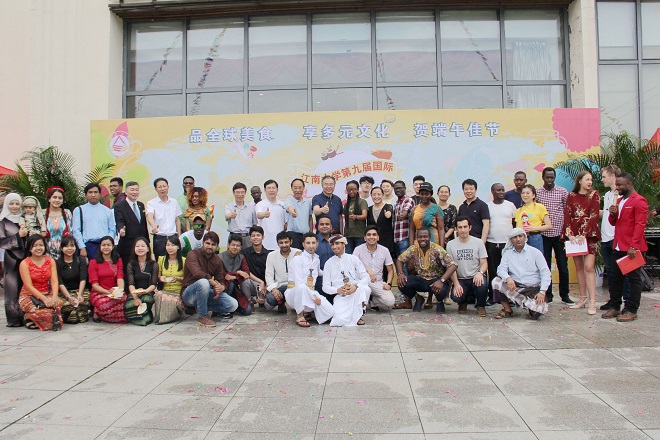 六月的江南,树木葳蕤、芳草碧绿。6月6日中午,江南大学第9届国际美食文化节在长广溪宾馆绿岛茶园隆重开幕。党委办公室主任朱飞、校长办公室主任张光生、工会主席冯群康、后勤管理处处长方正泉、国际教育学院与北美学院党委书记高雪梅,宣传部、学工处等职能部门负责人,以及中外留学生代表约300人出席此次开幕仪式。