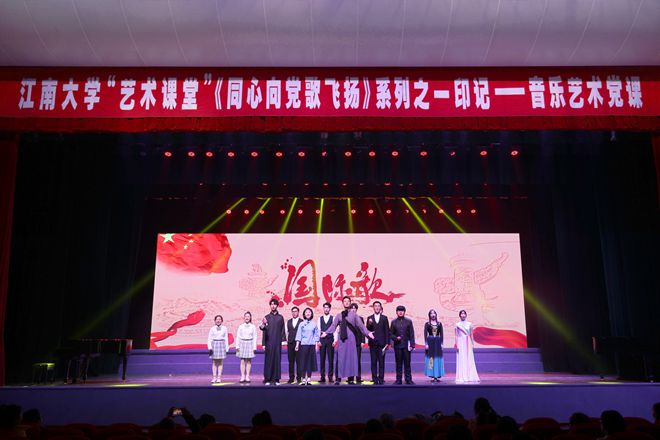 11月26日晚,2021年度江南大学“艺术课堂”大学生素质拓展项目《同心向党歌飞扬》系列之一“印记”——音乐艺术党课在文浩馆观众厅举行。本次音乐艺术党课由人文学院音乐系副教授钱琳、副教授张忻忻等主讲,通过讲述和音乐相结合的全新方式呈现中国建党100周年以来优秀人物的光辉事迹,以艺术手法带领师生走进他们的青春,领略他们的故事。