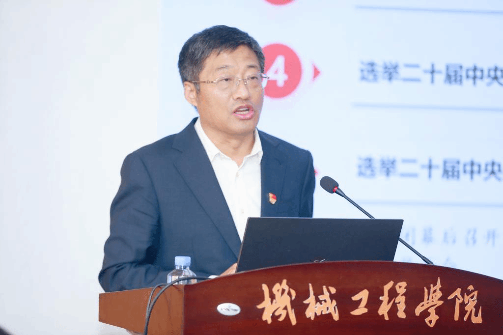 11月10日,校党委副书记、校长陈卫向机械工程学院师生代表宣讲党的二十大精神。陈卫围绕党的二十大的主题和主要成果、过去五年的工作和新时代十年的伟大变革、开辟马克思主义中国化时代化新境界、新时代新征程中国共产党的使命任务、加快构建新发展格局、科教兴国战略、文化自信等方面,对党的二十大提出的新思想新论断、作出的新部署新要求作了全面系统的宣讲解读。他重点解读了党的二十大报告中关于教育、科技、人才工作的主要论述。他指出,这次报告首次把教育、科技、人才进行“三位一体”统筹安排、一体部署,并摆放在论述“全面建设社会主义现代化国家的首要任务”,即“高质量发展”之后的突出位置,极具战略意义和深远影响。报告还作出“教育、科技、人才是全面建设社会主义现代化国家的基础性、战略性支撑”的重要论断,充分体现了以习近平同志为核心的党中央对新时代教育、科技、人才工作的深刻把握、高度重视和对教科战线的殷切期望。他指出,作为高校,必须坚持为党育人、为国育才,以学校“奋进计划”为指引,全面提高人才培养质量。全面、准确、系统地学习贯彻党的二十大精神,要做到深刻领会党的二十大的主题、深刻领会过去五年工作和新时代十年的伟大变革、深刻领会“两个确立”的决定性意义等十三个“深刻领会”。他强调了青年的责任与担当,寄语机械学子要坚持正确人生道路,增强“四个意识”,坚定“四个自信”,做到“两个维护”;要练就过硬本领,打造又博又专、推陈出新的知识结构,努力成为行业骨干、青年先锋;要发扬永久奋斗的传统,立志做有理想、敢担当、能吃苦、肯奋斗的新时代好青年,用担当和尽责展现青春风采。