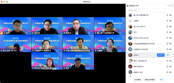 近日,2022年高校媒体融合发展高峰论坛以线上直播的形式举行,来自全国100余名高校党委宣传部、出版社、期刊中心、学报编辑部负责人参会。论坛由中华出版促进会教育新闻出版专业委员会、中国出版传媒商报社、无锡市互联网传播研究会联合主办,江南大学参与举办。