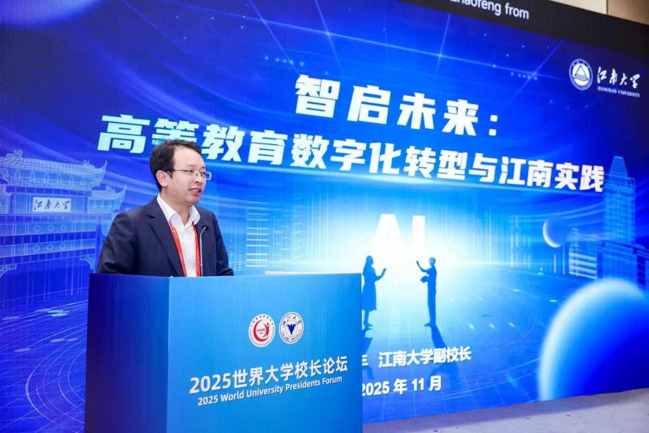 11月8日,2025世界大学校长论坛在杭州国际博览中心举办。论坛以“人工智能与高等教育的未来”为主题,来自全球五大洲40余个国家和地区的近千位代表参会。我校党委常委、副校长李兆丰代表学校出席大会,并应邀在“数字化转型与高等教育公平”分论坛作“智启未来:高等教育数字化转型与江南实践”专题报告。