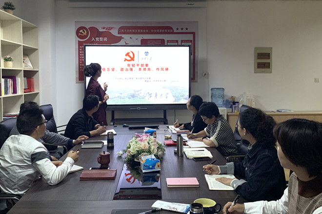 10月22日下午,按照“不忘初心、牢记使命”主题教育要求,基金会、社资处支部召开支部党员大会,党支部书记窦新华主讲了题为“年轻干部要信念坚、政治强、本领高、作风硬”的党课。