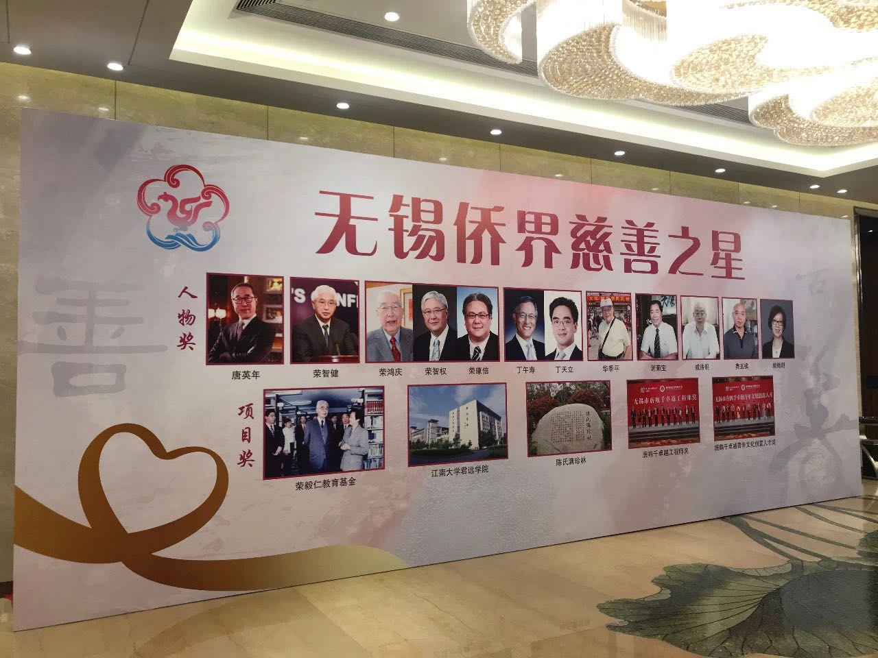 本次“无锡侨界慈善之星”共评选个人奖10项,项目奖5项。结合多年来侨界爱心人士给予我校的支持情况,我校推荐7位个人(项目)参评“慈善项目”。最终,荣智健,唐英年,荣鸿庆、荣智权、荣康信祖孙三人当选“无锡侨界慈善之星”人物奖,荣毅仁教育基金、江南大学君远学院当选“无锡侨界慈善之星”项目奖。