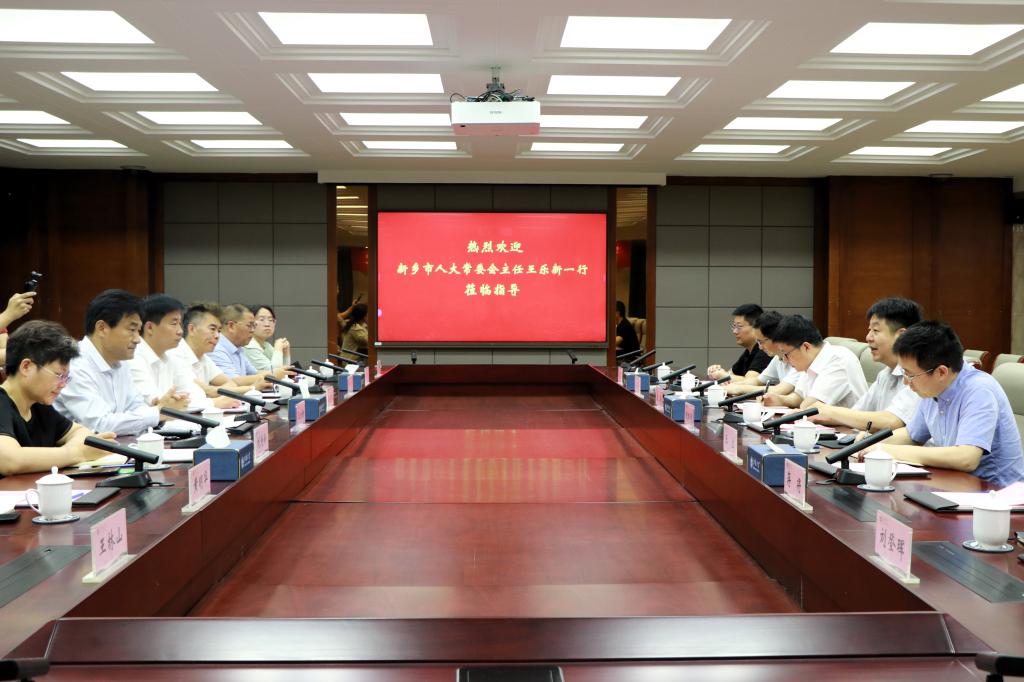 倪松涛对王乐新一行的到来表示热烈欢迎,介绍了学校的历史沿革、发展概况、学科建设、成果转化及社会服务等情况,并着重强调了校地合作的重要性,希望能充分发挥江南大学的学科优势和科研创新能力,助力新乡市、原阳县特色产业高质量发展。王立介绍了学校的产学研合作模式。