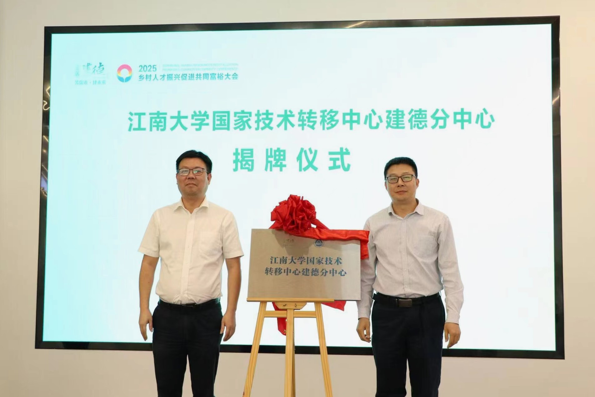 会上,康振与徐斌共同为江南大学国家技术转移中心建德分中心揭牌,进一步完善校地双方农业科创服务平台体系;刘睿杰介绍了学校食品领域最新成果,为参会企业提供技术参考;现场还进行了当地企业与学校合作项目签约仪式。