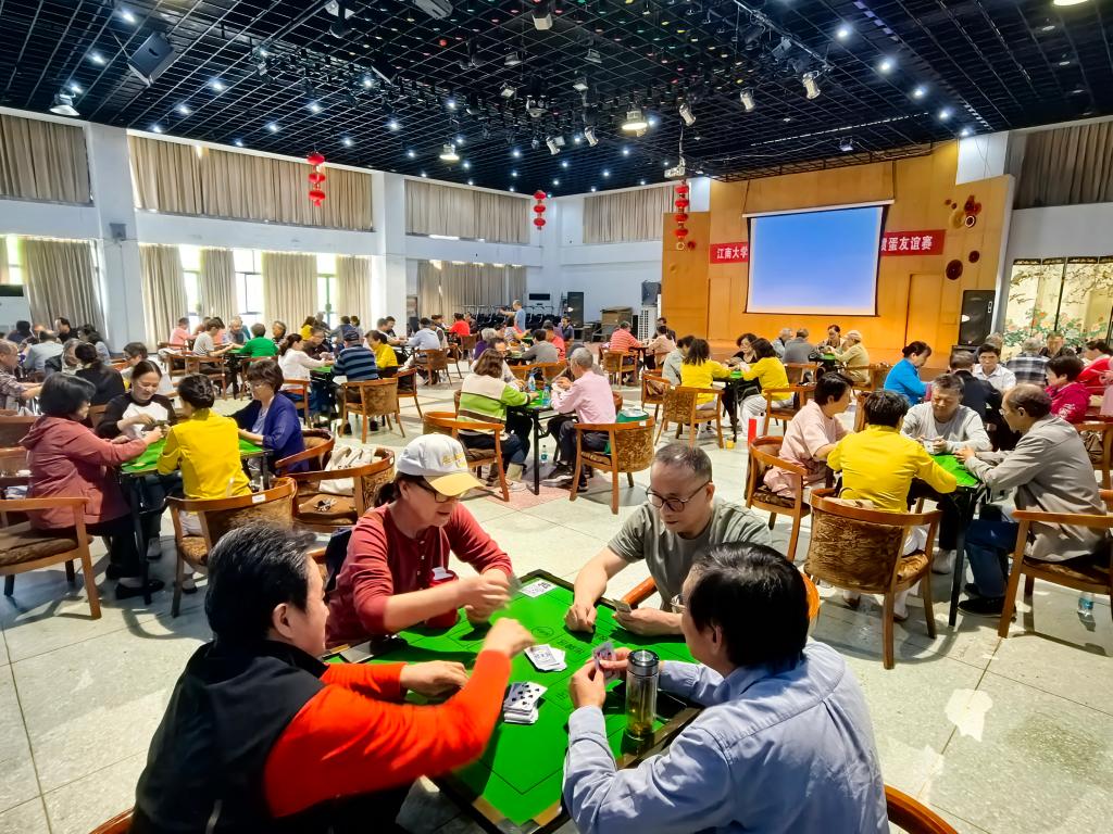 下午,江南大学退休教职工健身系列活动之第八届掼蛋友谊赛在南区大学生活动中心举行。本次掼蛋比赛共有80名退休教职工踊跃报名参赛。离退休党工委副书记、离退休工作处副处长陈祎到场致辞,她说,在校运会期间组织退休教职工掼蛋比赛已经成为我们的惯例,这项活动之所以能保留下来,是因为这个活动贴近退休教师的需要,既锻炼了脑力,又增进了感情交流,深受大家的喜爱。因此,要把这项活动越办越好,把它办成老同志团结和谐友谊的平台。她希望大家充分享受比赛带来的快乐,并祝比赛圆满成功。姜忠平宣布比赛开始后,经过三轮激烈比拼,吴保承/邵康荣获一等奖,冯群康/周梅芳、吴锡生/陆剑雄获二等奖,沈国庆/张宁、王林祥/陈东林、吴素健/吴嘉澍获三等奖。最后,进行了颁奖仪式,姜忠平和张才兴等为获奖者颁奖。