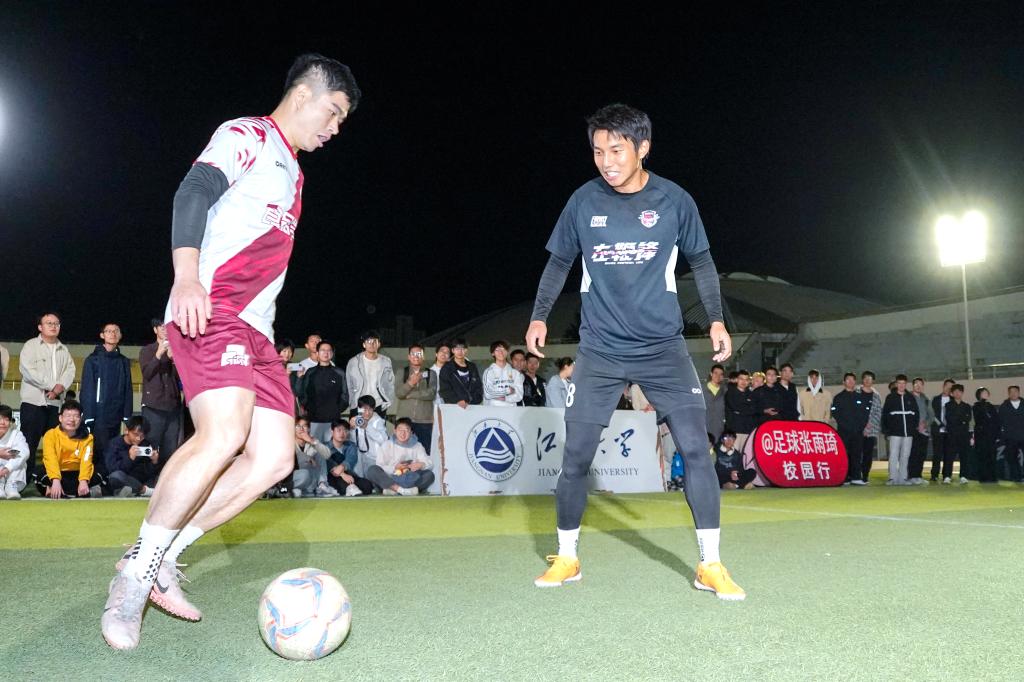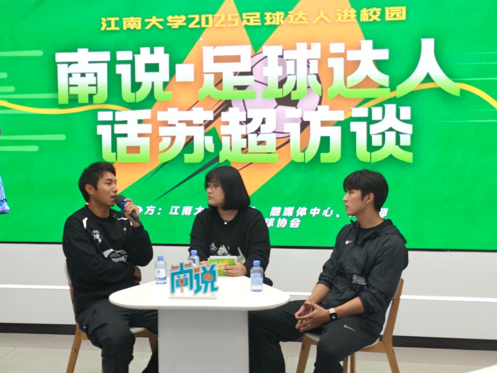 活动伊始,张雨琦、校足球队指导老师濮宇尘受邀做客“南说·足球达人进校园话‘苏超’”访谈。他们围绕“苏超”的火爆态势对校园足球发展、足球氛围营造等话题分享了各自见解,并为即将出征省运会的江南大学校队送上针对性建议。