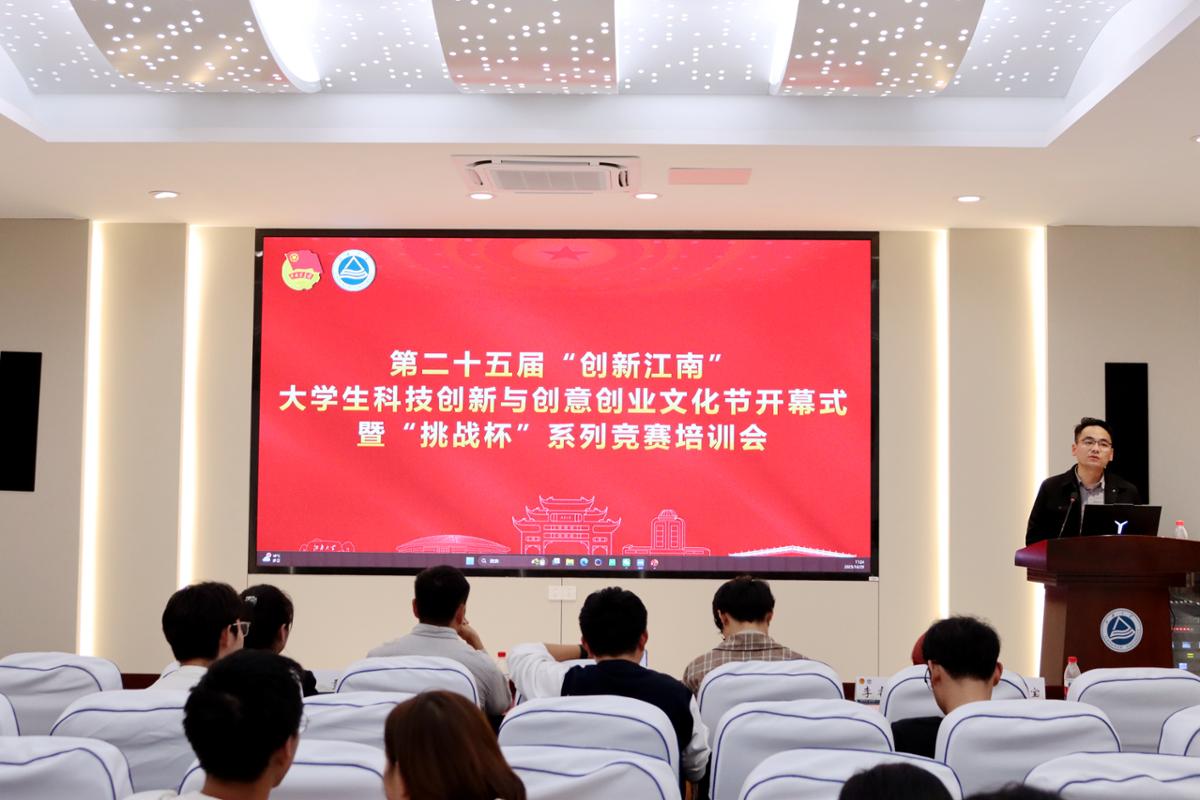 10月29日下午,江南大学第二十五届“创新江南”大学生科技创新与创意创业文化节开幕式暨“挑战杯”系列竞赛培训会在纺织科学与工程学院A103报告厅举办,校团委副书记吴垚、各学院分团委书记、“创响江苏”首席专家王阳、相关工作负责教师,拟申报第十五届“挑战杯”中国大学生创业计划竞赛作品项目指导教师、学生代表等参与会议。培训会由杨光宝主持。