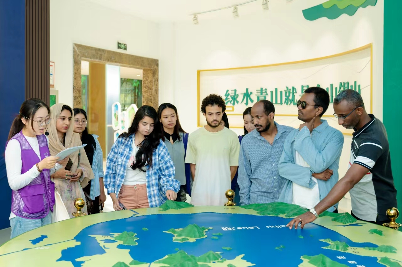 最后一站是蠡湖展示馆。展馆通过沙盘模型、多媒体影像和历史资料,系统性地展示了蠡湖地区从昔日污染严重到如今水清岸绿的沧桑巨变。这场“穿越时空”的旅程,让留学生们对无锡乃至中国在水环境保护和可持续发展道路上所付出的巨大努力与取得的辉煌成就有了全面而深刻的认识。