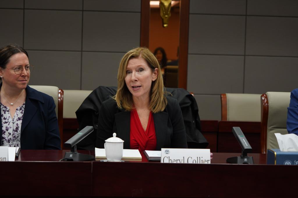 Cheryl Collier对江南大学的热情接待致以诚挚感谢,盛赞学校在学术研究领域的深厚积淀与开放包容的国际视野。她表示,此次访问是两校间首次高层会晤,为双方深入沟通、增进互信搭建了重要平台;期待以此为起点,与江南大学建立长期稳定的合作关系,在更多领域开展实质性合作。