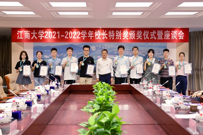 座谈会伊始,首先通过视频回顾了江南大学“校长特别奖”11年来的评选历程以及本届“校长特别奖”答辩会上的精彩时刻。张影陆宣读《关于表彰江南大学2021-2022学年“校长特别奖”获得者的决定》,陈卫为获奖者一一颁发荣誉奖章及证书,并合影留念。座谈环节,10位获奖学生围绕自己在江南大学的求学历程,分享了各自在成长蜕变中的所见所闻所感,纷纷表达了对学校培养的感激之情。