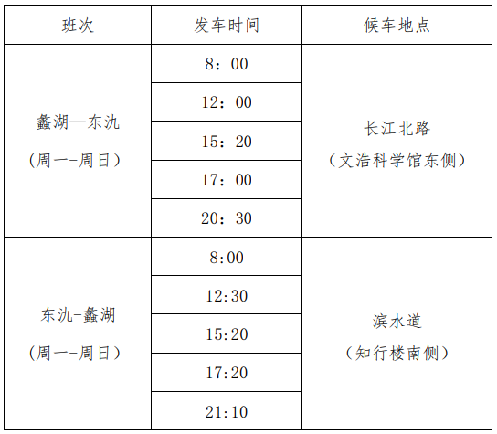 班车运行时刻将依据天气情况和教学安排动态调整,具体可通过“江小氿公众号-校区服务-班车时刻”或“e江南公众号-校园服务-班车时刻表”查询。法定节假日若有调整另行通知。