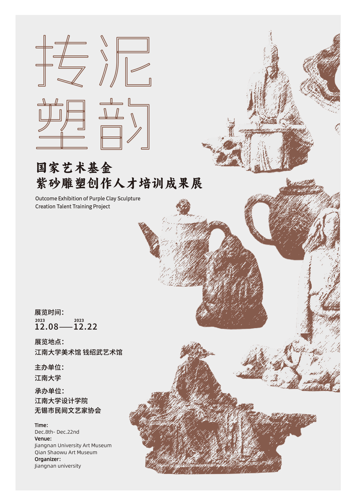 “泥沙入手经抟㨁,光色便与寻常殊”。2023年国家艺术基金“抟泥塑韵-紫砂雕塑创作人才培训成果展”汇聚了来自来自全国各高校、独立艺术设计工作室、地方窑口的50名紫砂从业人员的作品。此次展览将在江南大学钱绍武美术馆展出,并通过线上展览分享给更多观众,致力于推动紫砂艺术不断向前发展,为中华民族的文化复兴贡献力量!