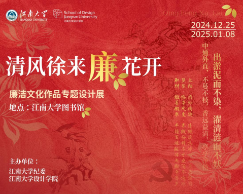 为学深悟透习近平新时代中国特色社会主义思想,切实贯彻党的二十届三中全会和全国教育大会精神,推进党纪学习教育常态化长效化,探索和提升廉洁教育的普及度和深入度,2023年起,江南大学纪委会同设计学院持续举办“清风徐来‘廉’花开”廉洁文化作品专题设计展。目前第二期正在如火如荼进行中。
