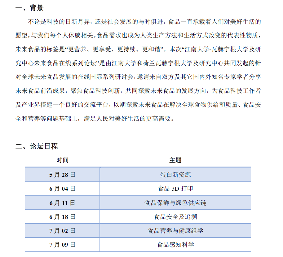 28 主题 江南大学——瓦赫宁根大学及研究中心未来食品云端系列论坛
