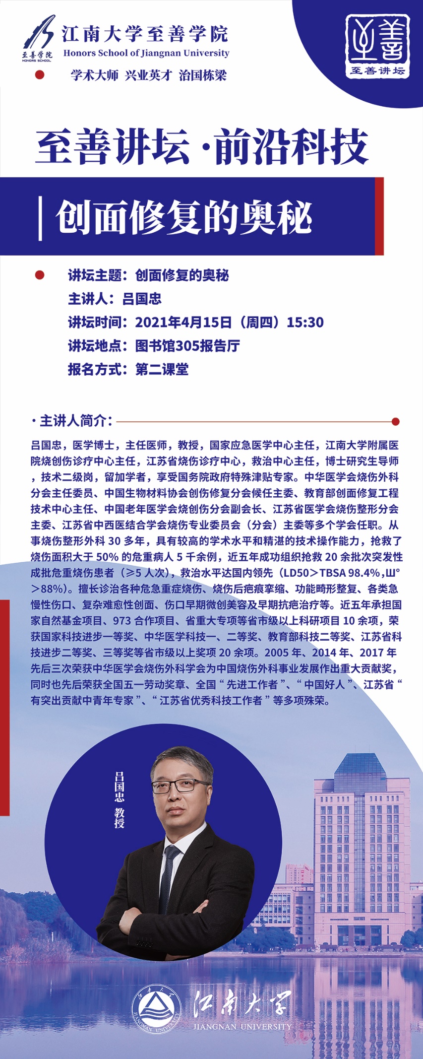 吕国忠,医学博士,主任医师,教授,国家应急医学中心主任,江南大学附属医院烧创伤诊疗中心主任,江苏省烧伤诊疗中心,救治中心主任,博士研究生导师,技术二级岗,留加学者,享受国务院政府特殊津贴专家。中华医学会烧伤外科分会主任委员、中国生物材料协会创伤修复分会候任主委、教育部创面修复工程技术中心主任、中国老年医学会烧创伤分会副会长、江苏省医学会烧伤整形分会主委、江苏省中西医结合学会烧伤专业委员会(分会)主委等多个学会任职。从事烧伤整形外科30多年,具有较高的学术水平和精湛的技术操作能力,抢救了烧伤面积大于50%的危重病人5千余例,近五年成功组织抢救20余批次突发性成批危重烧伤患者(≥5人次),救治水平达国内领先(LD50>TBSA 98.4%,Ш°>88%)。擅长诊治各种危急重症烧伤、烧伤后疤痕挛缩、功能畸形整复、各类急慢性伤口、复杂难愈性创面、伤口早期微创美容及早期抗疤治疗等。近五年承担国家自然基金项目、973合作项目、省重大专项等省市级以上科研项目10余项,荣获国家科技进步一等奖、中华医学科技一、二等奖、教育部科技二等奖、江苏省科技进步二等奖、三等奖等省市级以上奖项20余项。2005年、2014年、2017年先后三次荣获中华医学会烧伤外科学会为中国烧伤外科事业发展作出重大贡献奖,同时也先后荣获全国五一劳动奖章、全国“先进工作者”、“中国好人”、江苏省“有突出贡献中青年专家”、“江苏省优秀科技工作者”等多项殊荣。
