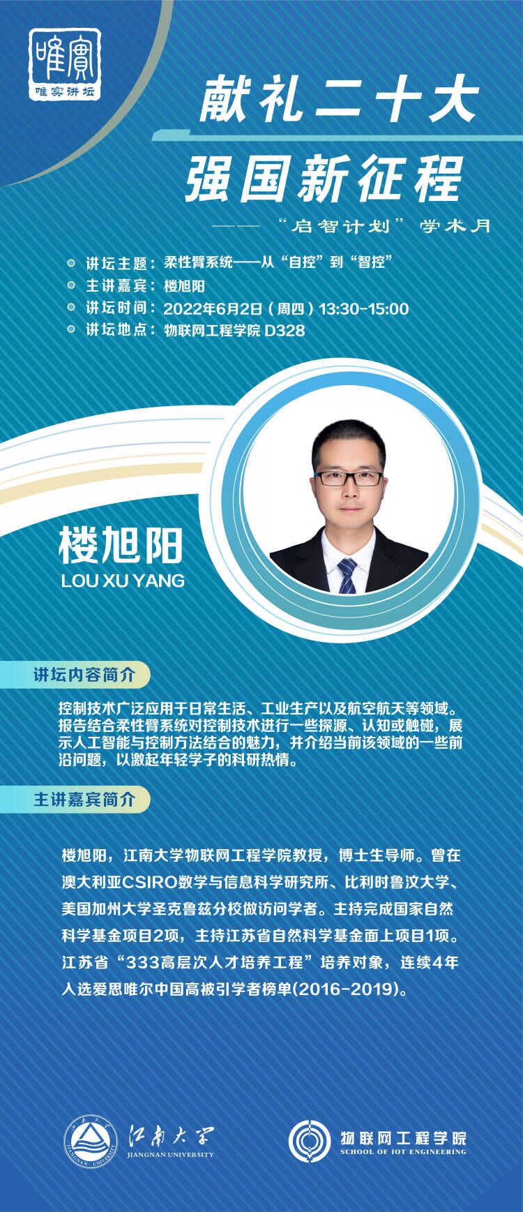 由于疫情防控的需要,此次讲座限制人数,只面向物联网工程学院本科生开放。