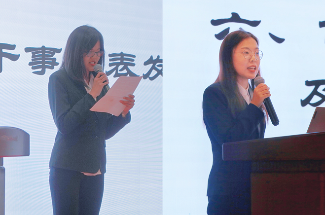 会上,协会全体成员佩戴工作证并在协会副会长杨谢冰清的带领下进行了庄严宣誓,正式加入协会成为一名江南招协人。紧接着,秘书处新干事,生物工程学院生技2102班康竞艺同学代表2021级新成员发言,选择生物专业是兴趣所在,选择江南是情怀所依,自己将以积极热情的态度迎接每一项工作任务,不断积累经验,提升能力,在招协的舞台上绽放光彩。
