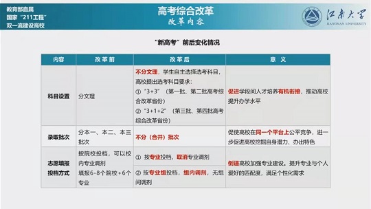 会上,李金杰做新高考政策培训,分“3+1+2”高考改革模式、“3+3”高考改革模式、非高考改革省份分组讲解,详尽介绍了新高考改革进程、改革变化、填报志愿方式及学校招生政策。中学行社会实践参与人员对各省份的高考招生政策有了更深入的了解,为回访母校宣讲打下坚实的理论基础。