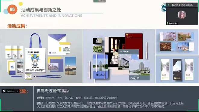 答辩中,各团队选手通过线上PPT答辩形式从宣讲团队介绍、前期准备工作、宣讲成果展示、团队创新设计等方面汇报展示中学行活动成果。各团队宣传形式多样、特色鲜明,团队制作高考加油视频鼓励学弟学妹们坚持奋斗,设计线上《合成江南大学》小游戏感受江南之美,设计定制江南周边文创增加宣传效果,组建的宣讲交流qq群、微信群以及钉钉群仍然保持活跃互动,让家长和学生获得一手的招生资讯。评委们在提问环节中也给予各团队更优化的建议和意见。本次中学行优秀团队将评选一、二、三等奖,结果将在各中学行群中公布。
