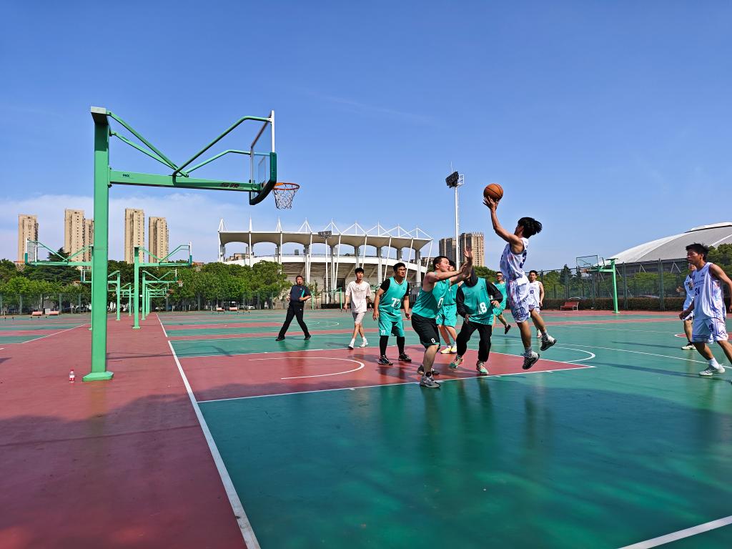 5月14日,集成电路学院篮球队与英飞凌科技(无锡)有限公司篮球俱乐部在江南大学蠡湖校区篮球场举办首次篮球友谊赛。学院篮球运动健儿与俱乐部篮球爱好者上演火热争锋。