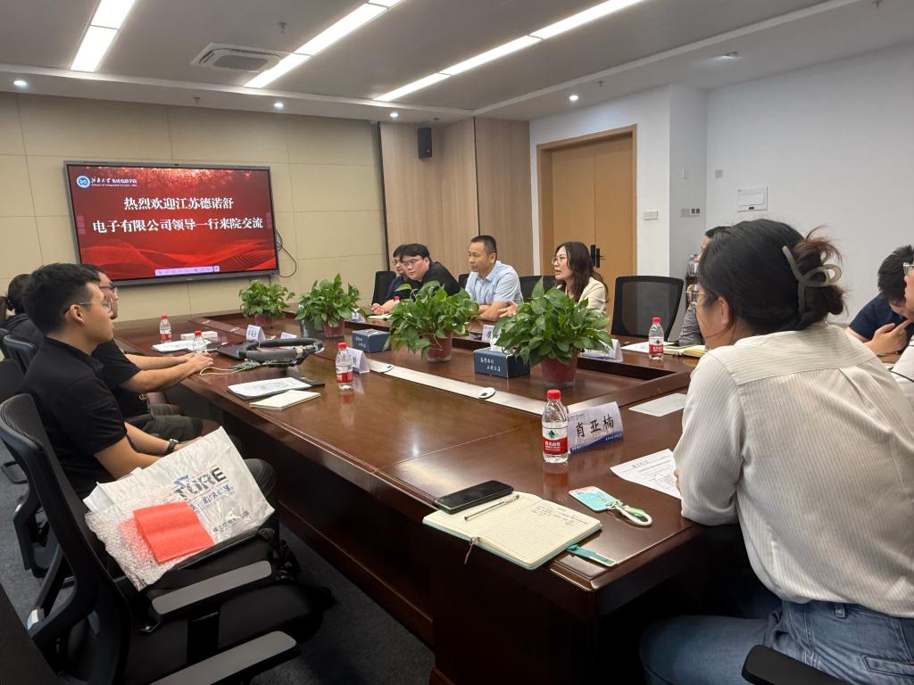 7月11日下午,江苏德诺舒电子有限公司创始人吕凌尧、财务兼人事经理冯丽宁、人资专员耿子喻一行来集成电路学院开展调研交流。集成电路学院党委书记耿向阳,党委副书记、副院长糜海燕,微电子科学与工程系系主任万茜等人员参加了座谈会。