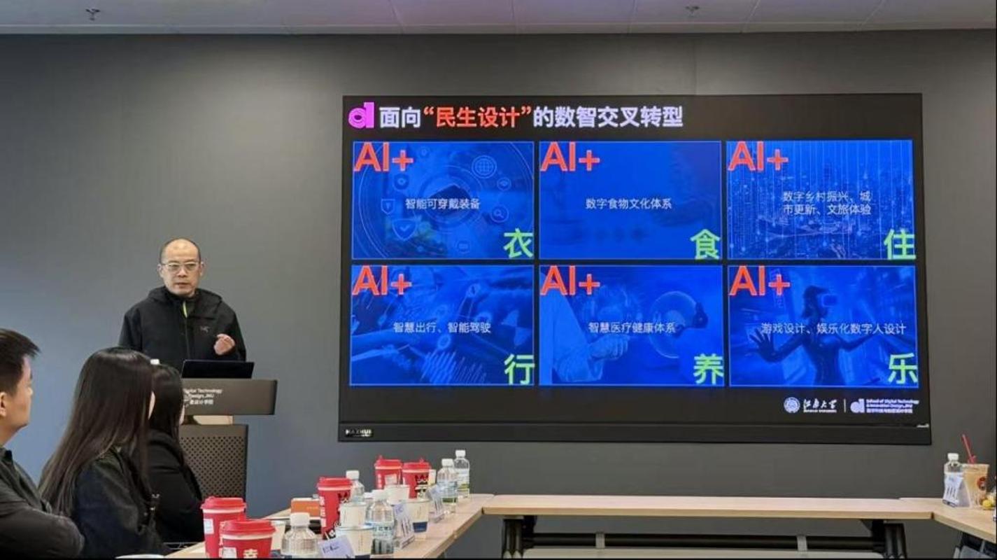 学院副院长牛犁教授详细介绍了学院的学科布局与专业特色,全面展示了学院科研在“人工智能+设计”交叉领域的实力与布局。工业设计与智能交互系主任沈杰作专题分享。他深入阐释了有关专业的建设背景、核心特色以及校企合作成果。与会企业代表结合各自领域的发展需求,与高校科研团队展开了深入地交流,共同描绘未来校企合作的美好图景。